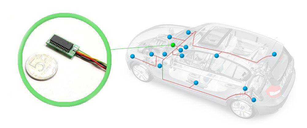 Модуль iCAN имеет минимальные размеры и может быть установлен максимально скрытно в любом жгуте автомобиля, где есть шина CAN. Алгоритм работы блокировки построен так, что ее выявление стандартными способами при угоне невозможны.